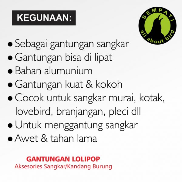 Nama produk : Gantungan sangkar burung lolipop Lipat hitam (fullsett)