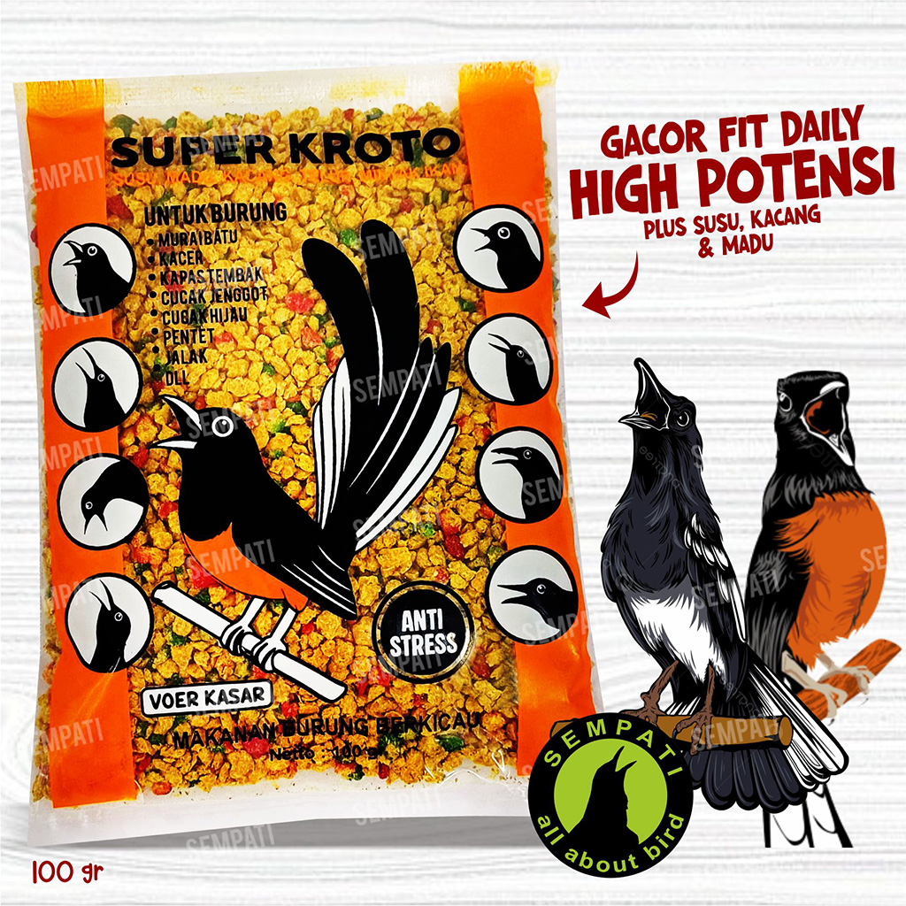 SEMPATI Super Kroto Pakan Burung Murai Batu Kacer Voer Kasar 100gr Anti Stress Pur Pakan Makanan Burung Kapas Tembak Cucak Jenggot Cucak Ijo Hijau Pentet Jalak Gacor Doping Stamina Rajin Bunyi Komposisi Kroto Susu Kacang Madu Telur Minyak Ikan